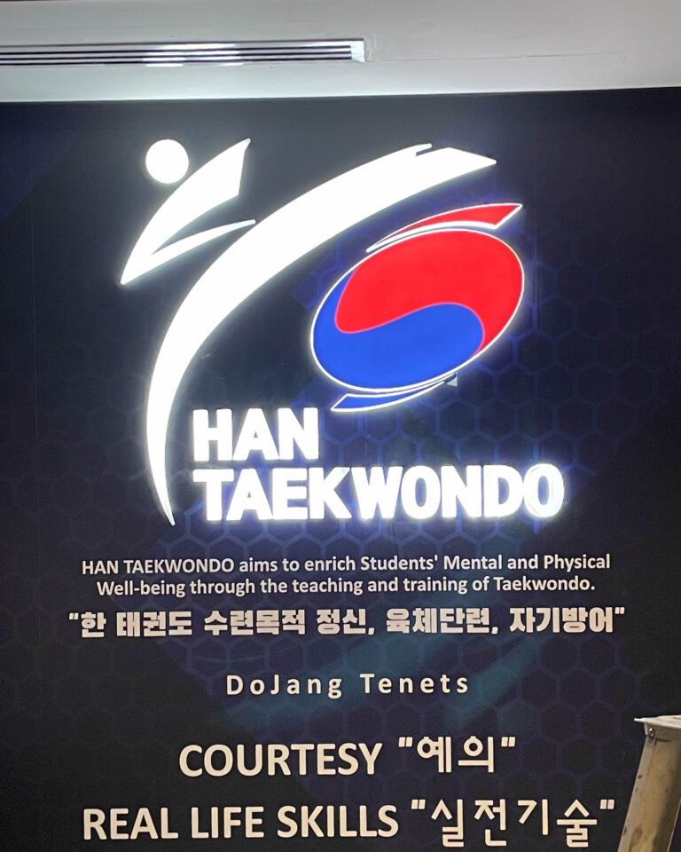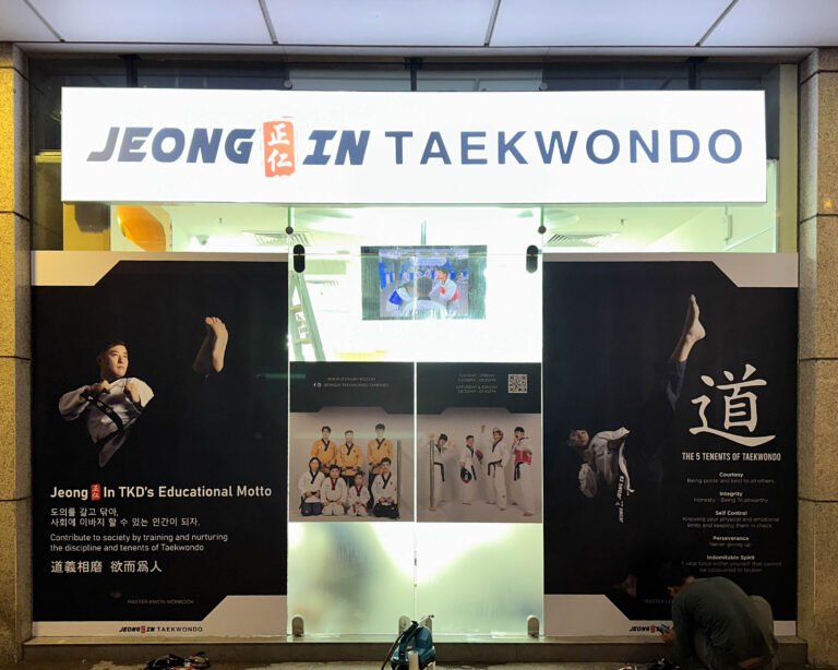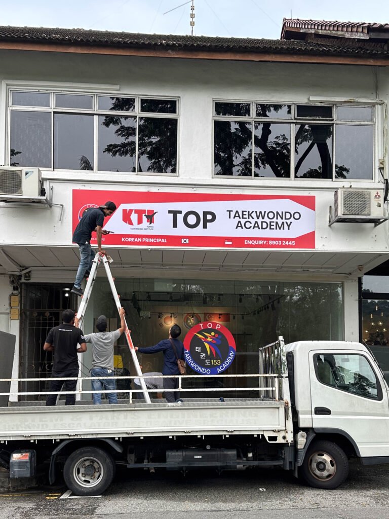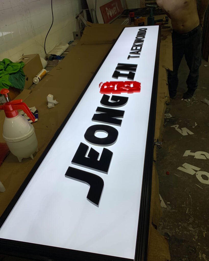 We fabricated and installed a classic front-lit lightbox signage for a local Taekwondo studio. Built with a timeless black powder-coated frame and bold 3D laser-cut acrylic letters, the signage delivers clean visibility and strong brand presence — day or night.