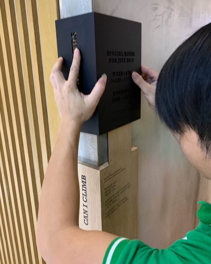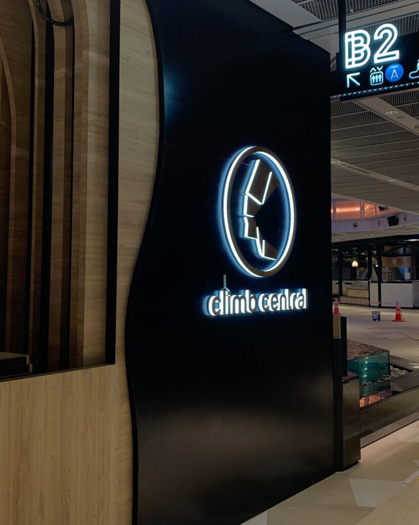 For Climb Central’s flagship outlet at Funan Mall, we delivered a full suite of custom signage and branding elements — combining illuminated features, laser-cut acrylic, custom carpentry, vinyl, and 3D logo fabrication. Every piece was tailored to match the brand’s energetic and rugged climbing vibe.