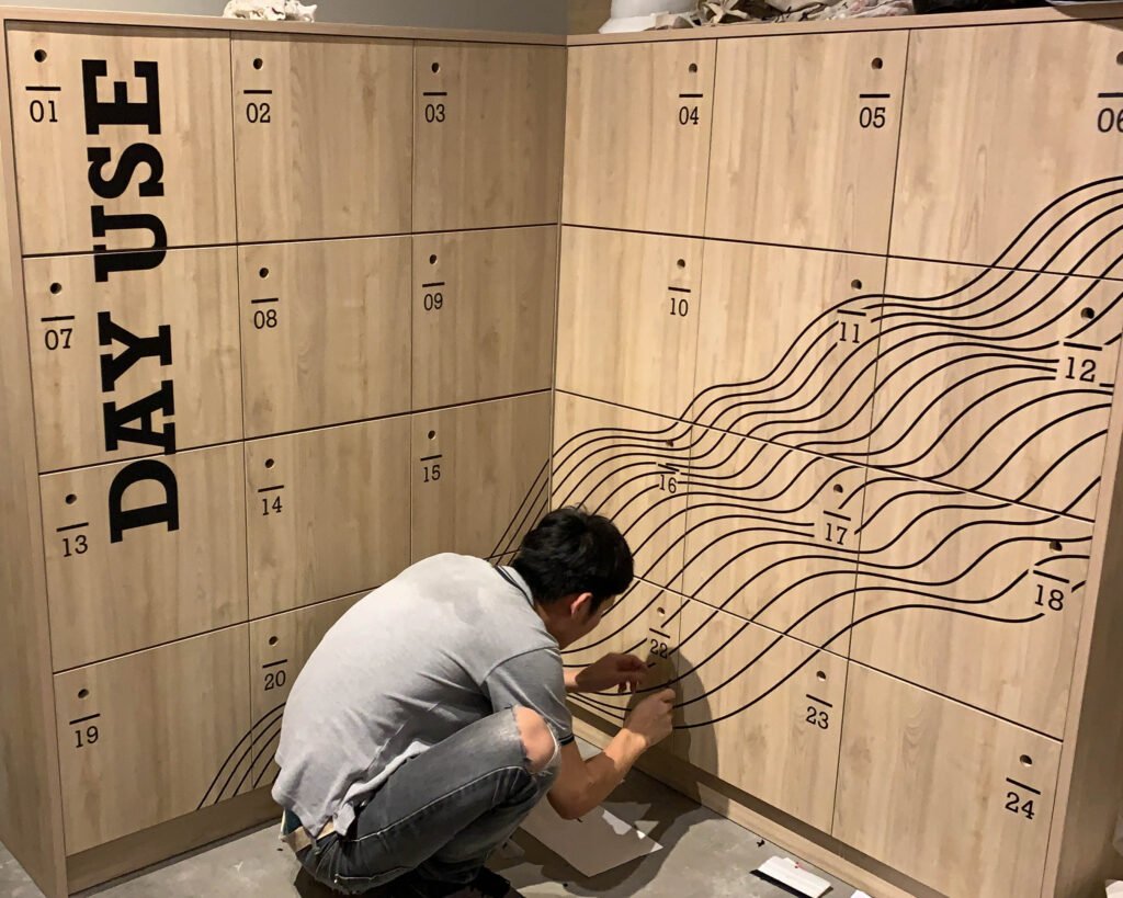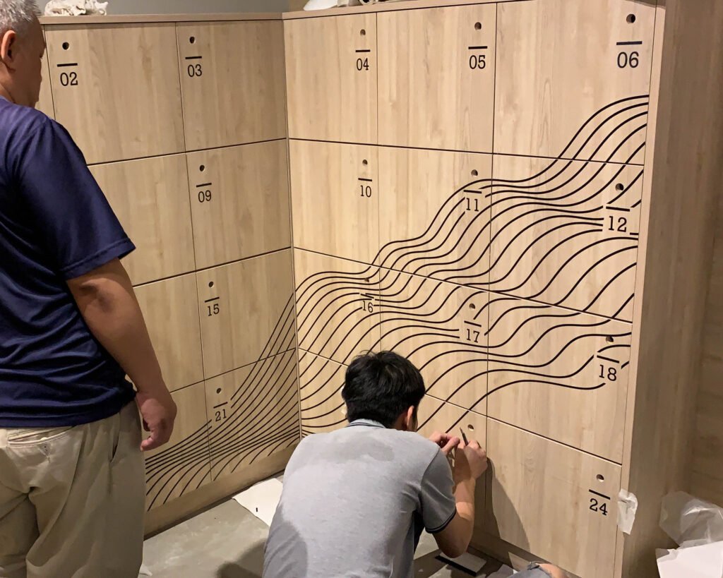 Custom die-cut vinyl graphics applied to carpentry lockers — durable, water-resistant, and fully branded.