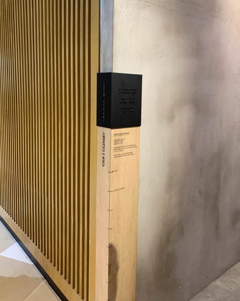 Black acrylic laser-cut signage mounted onto a custom-built carpentry base, blending seamlessly with the interior fit-out.