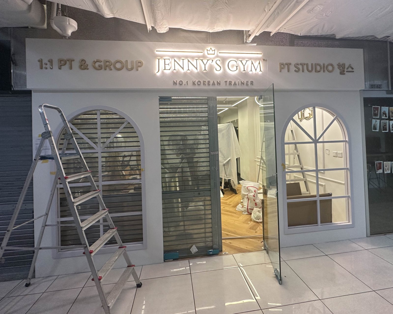Custom signage for Jenny’s Gym @ Far East Plaza — combining 30mm mini letters with mirror gold acrylic, 10mm laser-cut wordings, and warm white LED ...